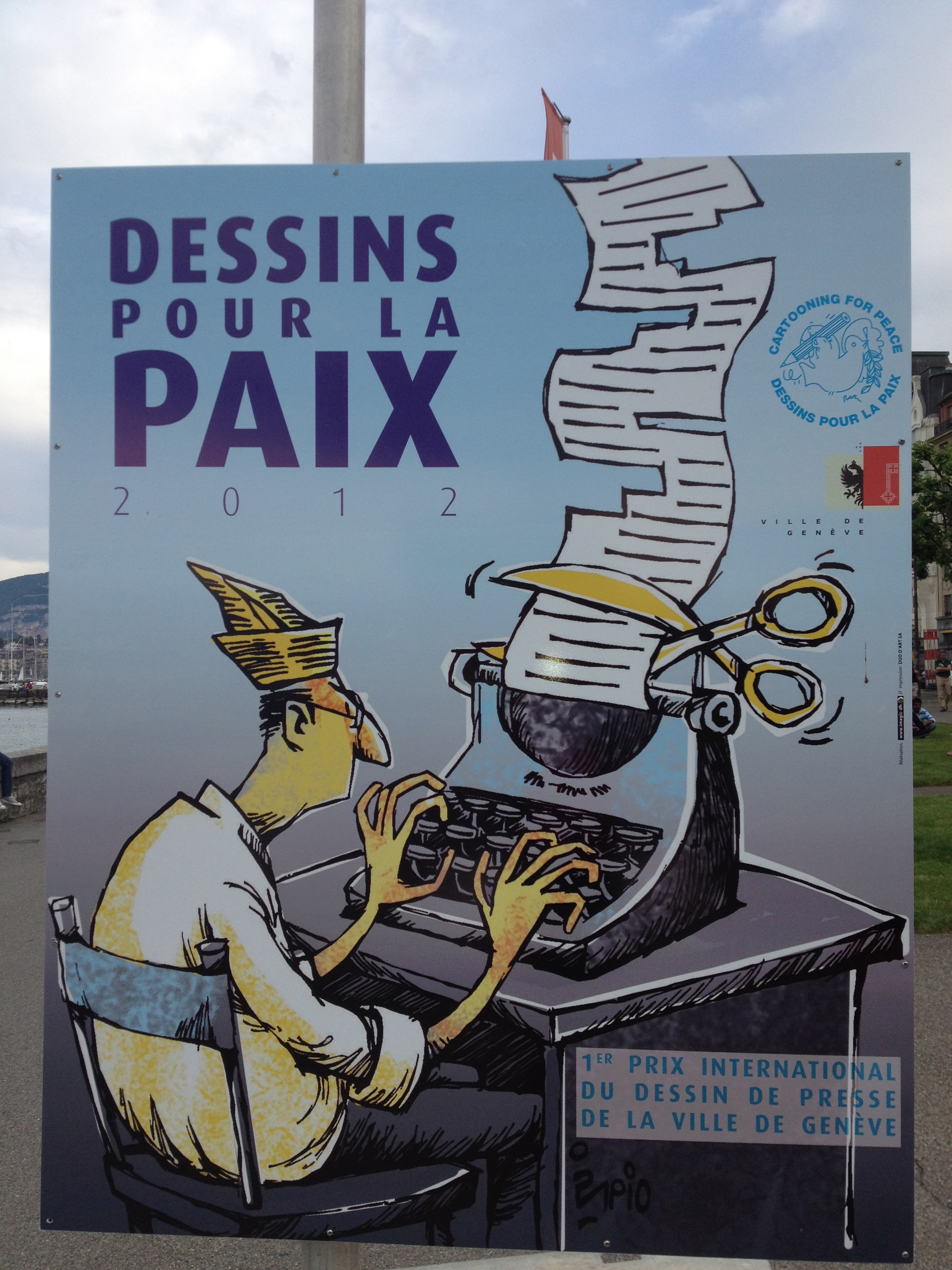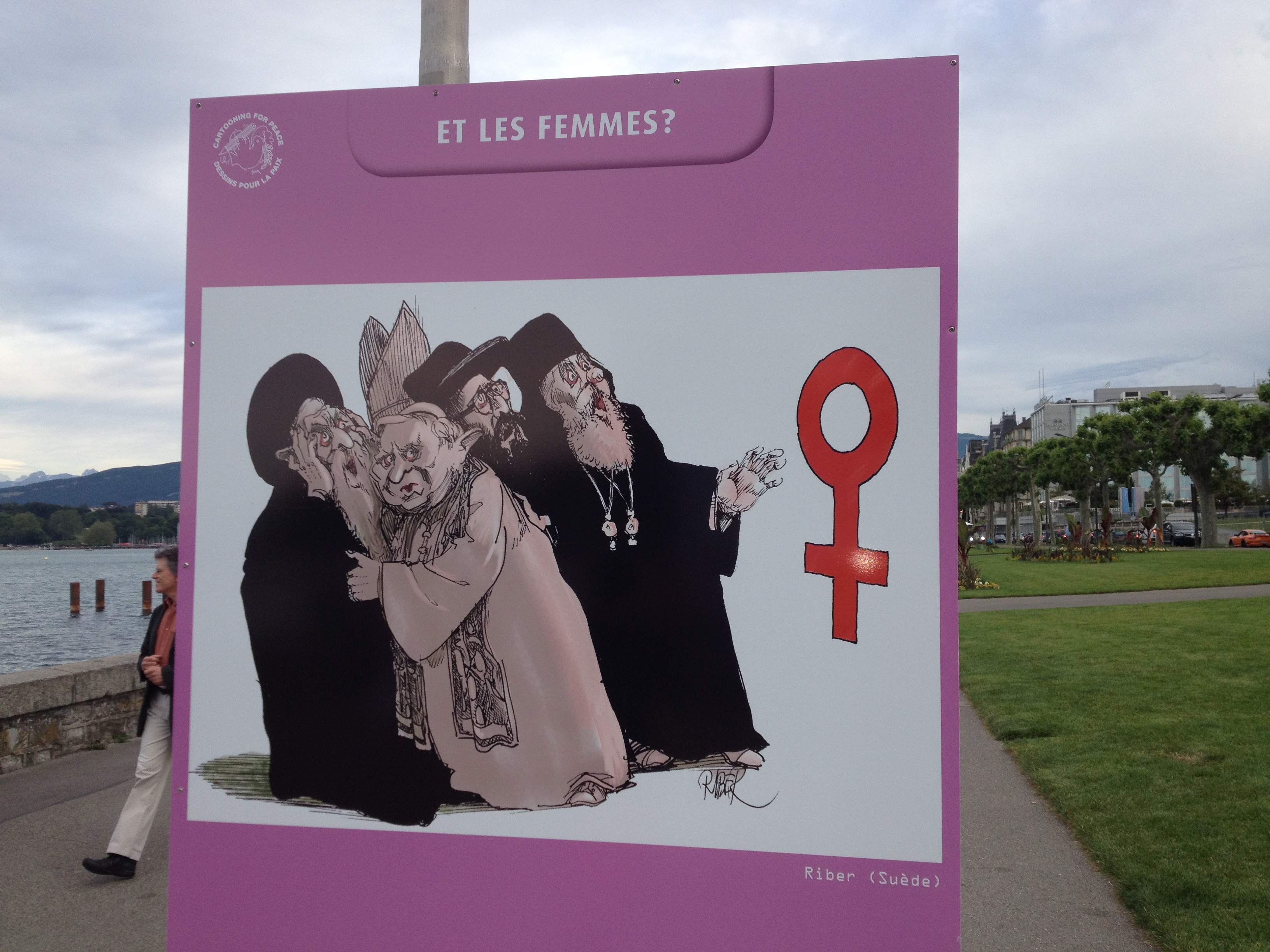 So I mentioned earlier that there was a display of political cartoons along Lake Geneva set up as an installation while I was there. This post is just a selection of the cartoons that I photographed while walking along the lake front (there were about 100 total):